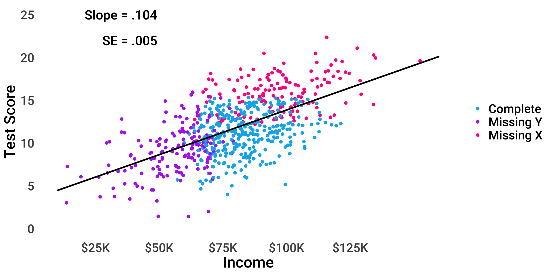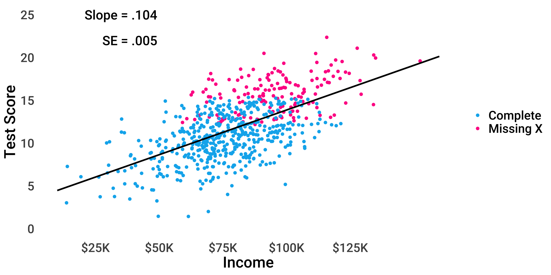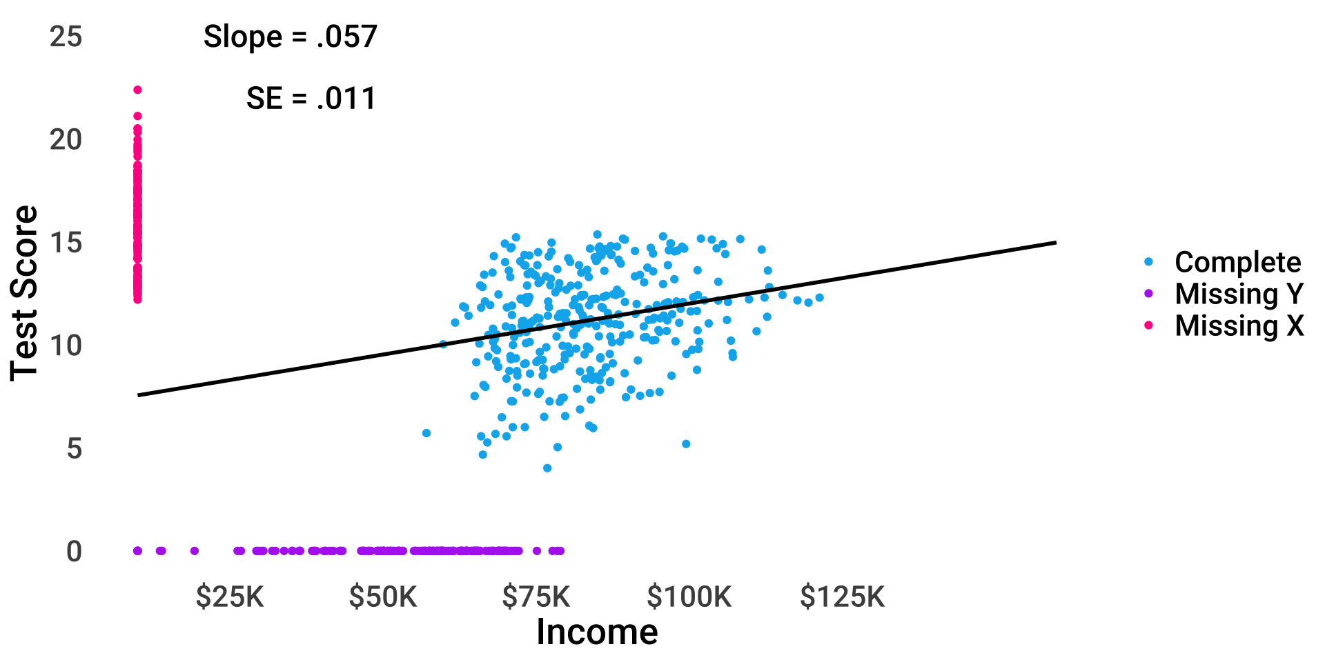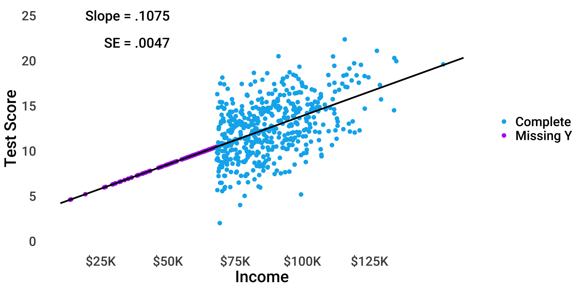 \(test_i = \beta_{0(obs)} + 0.6 \times miss_i + \beta_1 income_i + \epsilon_i\)