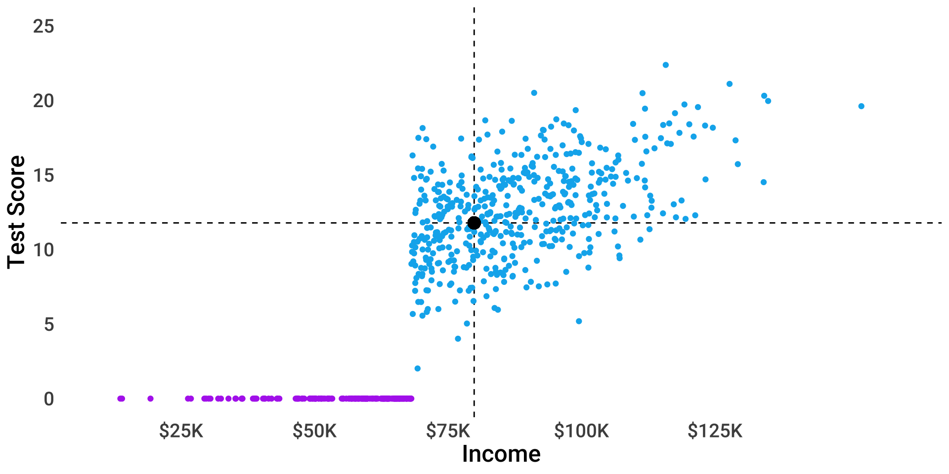 \[ test_i = \beta_0 + \beta_1 income_i + \epsilon_i \]