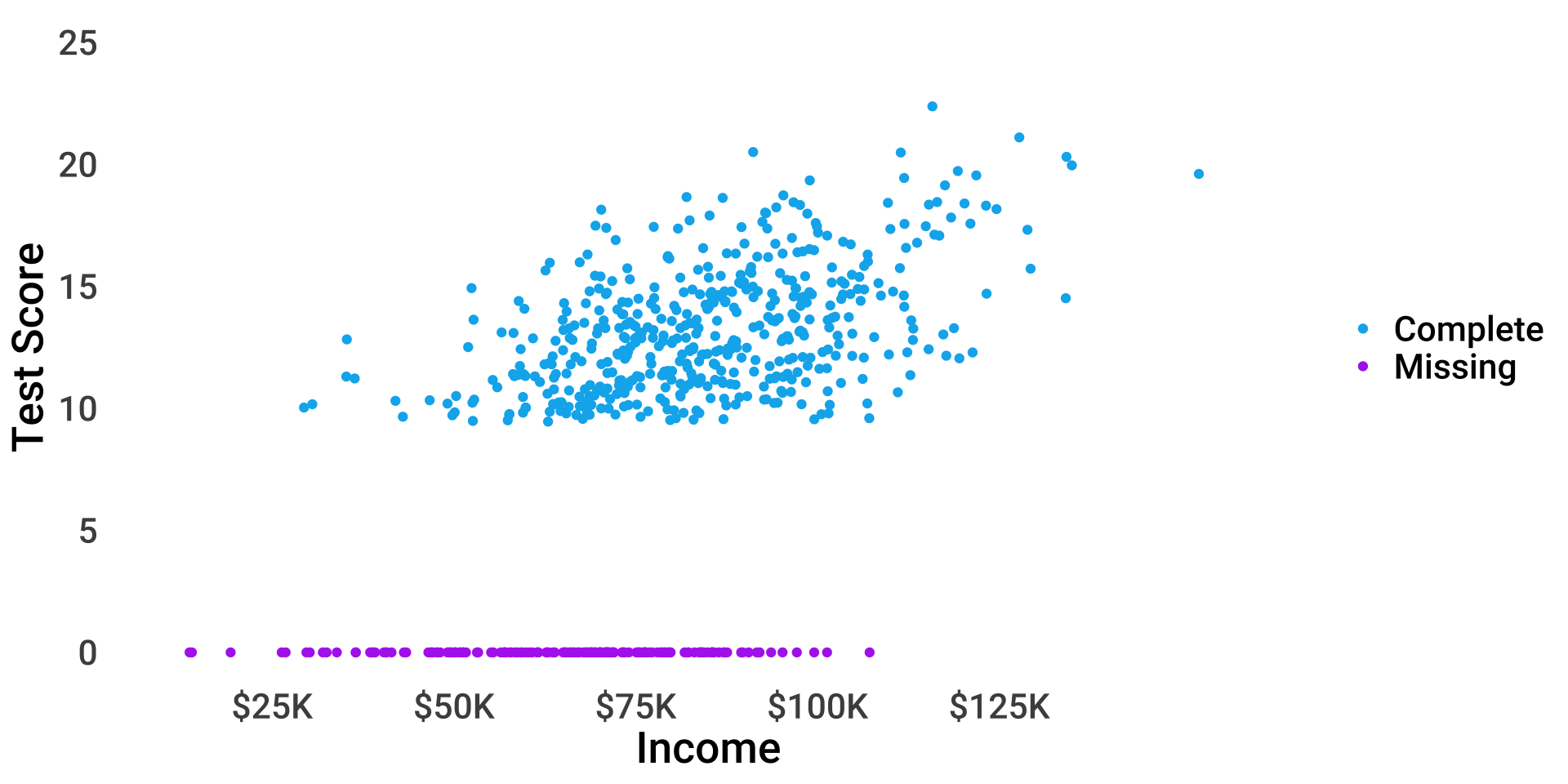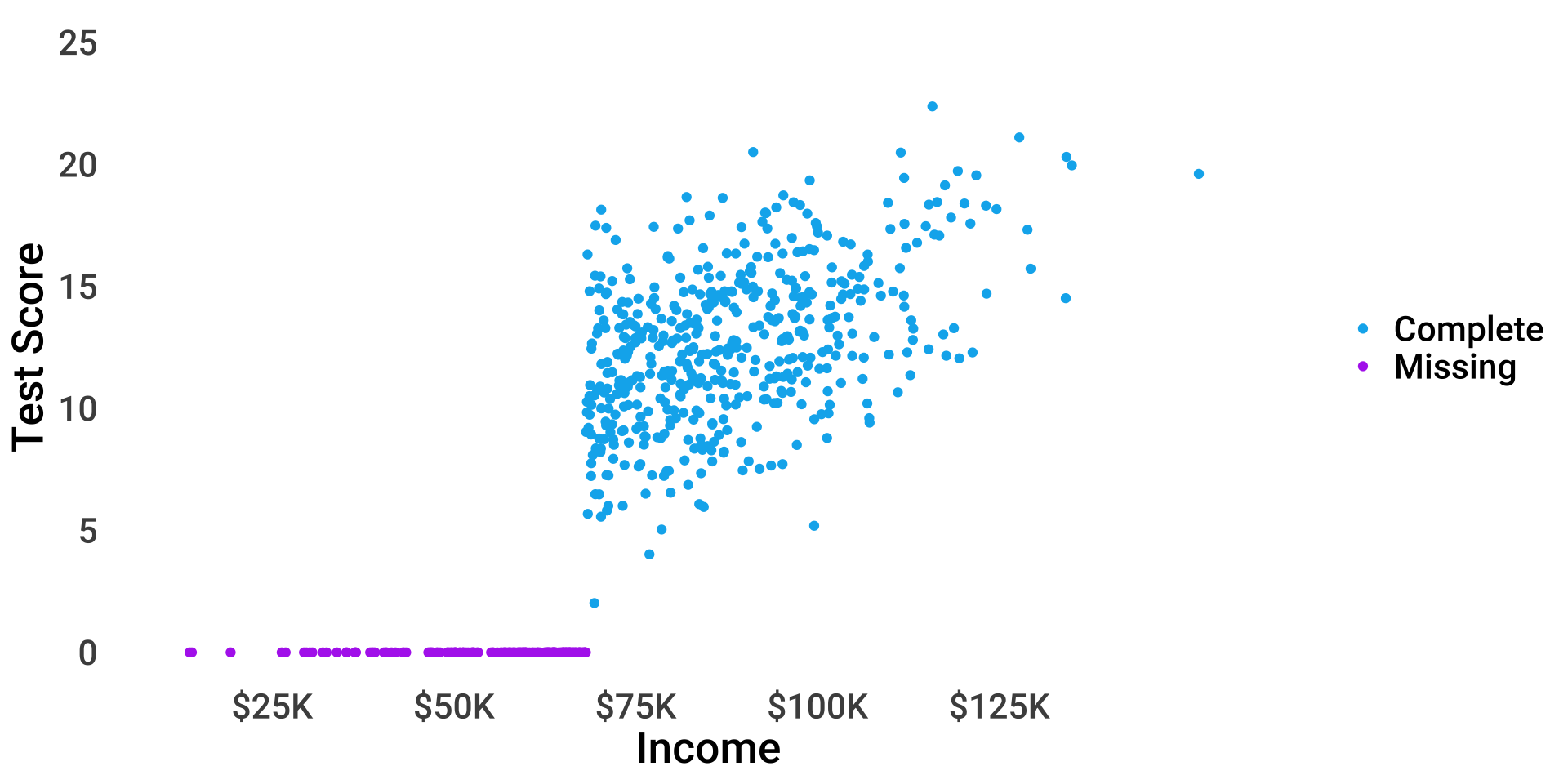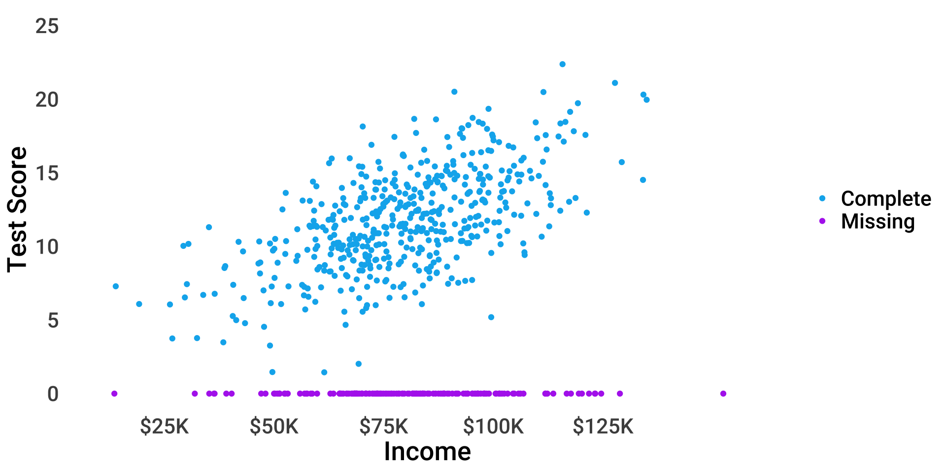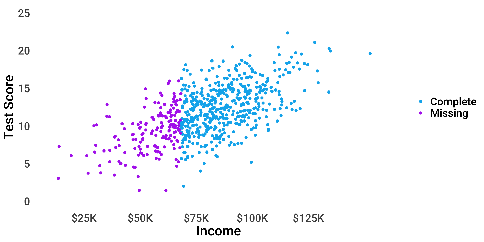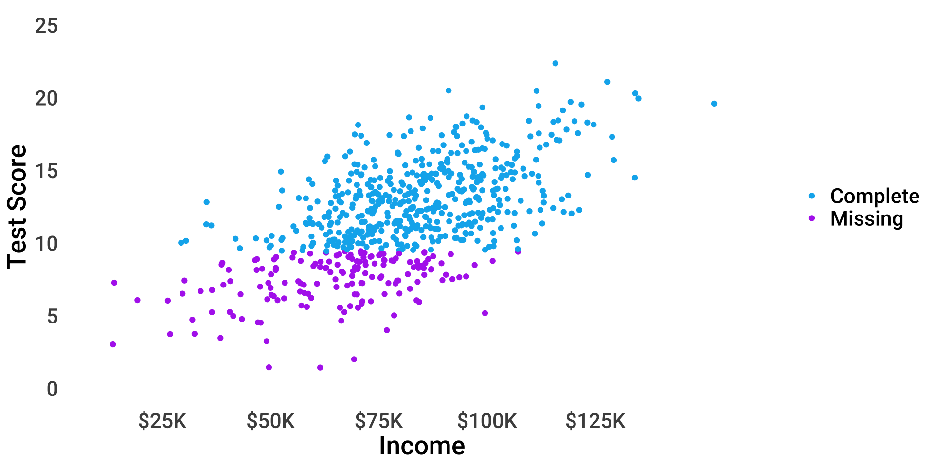 \(P(miss_{test}) = f(income)\), \(P(miss_{income}) = f(test)\)